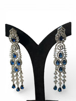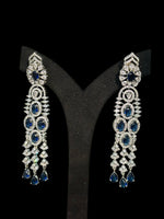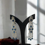 Expertly crafted with stunning blue American diamonds, these long-drop earrings are the perfect addition to any jewellery collection. Their elegant design and high-quality materials make them a versatile, eye-catching accessory that will elevate any outfit. Own a timeless piece that you can wear for any occasion.