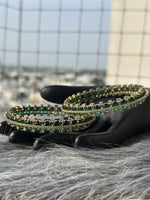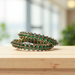 Indulge in regal charm with the Emerald Noor Bangle Pair, crafted in a luxurious gold finish and embellished with deep ruby-tone stones accented by sparkling crystals. Designed to exude timeless elegance. The rich crimson hues paired with intricate detailing make this bangle set a statement accessory that enhances both ethnic and fusion ensembles.