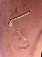 This silver bracelet has circular motifs spaced out evenly, with three of them studded with single stone zircons.