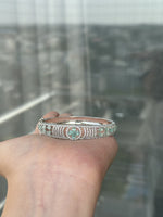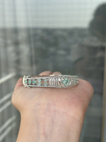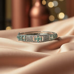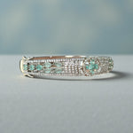 This Women Silver Plated AD Sea Green Stone Studded Bangle Srtyle Bracelet exudes elegance and sophistication with its timeless, classic design. It's crafted of silver-plated metal, adorned with sparkling AD stones, and finished with a charming bangle style. Perfect for formal or casual wear.